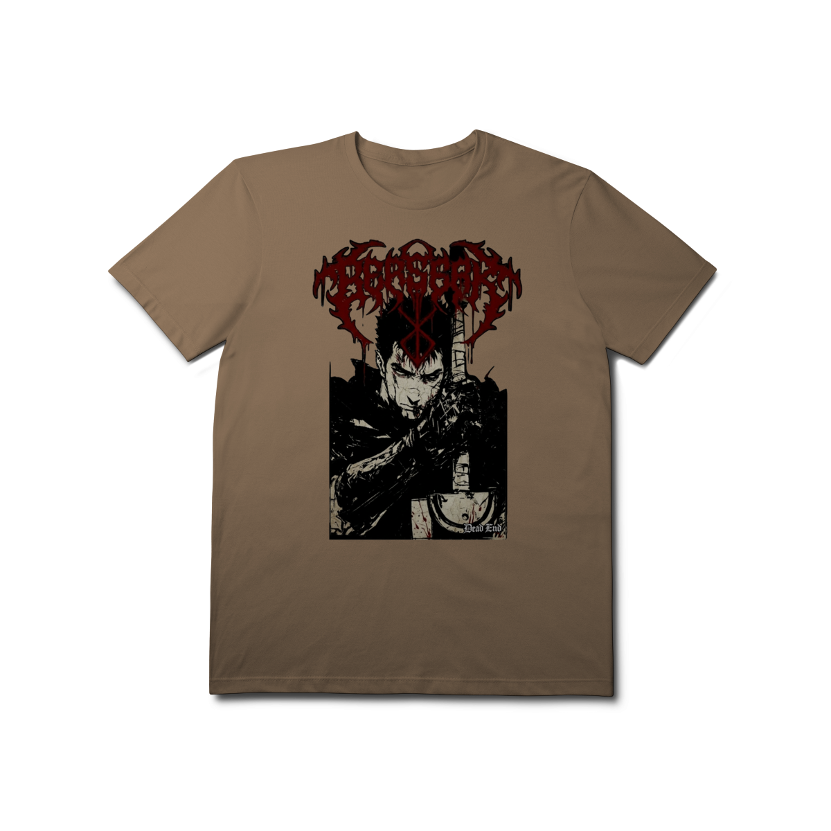 Feita para resistir a qualquer intensidade e à própria causalidade, esta peça é produzida em algodão heavyweight 220g/m². O toque é encorpado, macio e focado na máxima durabilidade. A gola canelada reforçada e as costuras duplas garantem que a camiseta mantenha sua forma original mesmo após meses de uso intenso. A estampa preserva os detalhes do rosto de Guts e o vermelho sangue da tipografia metal.