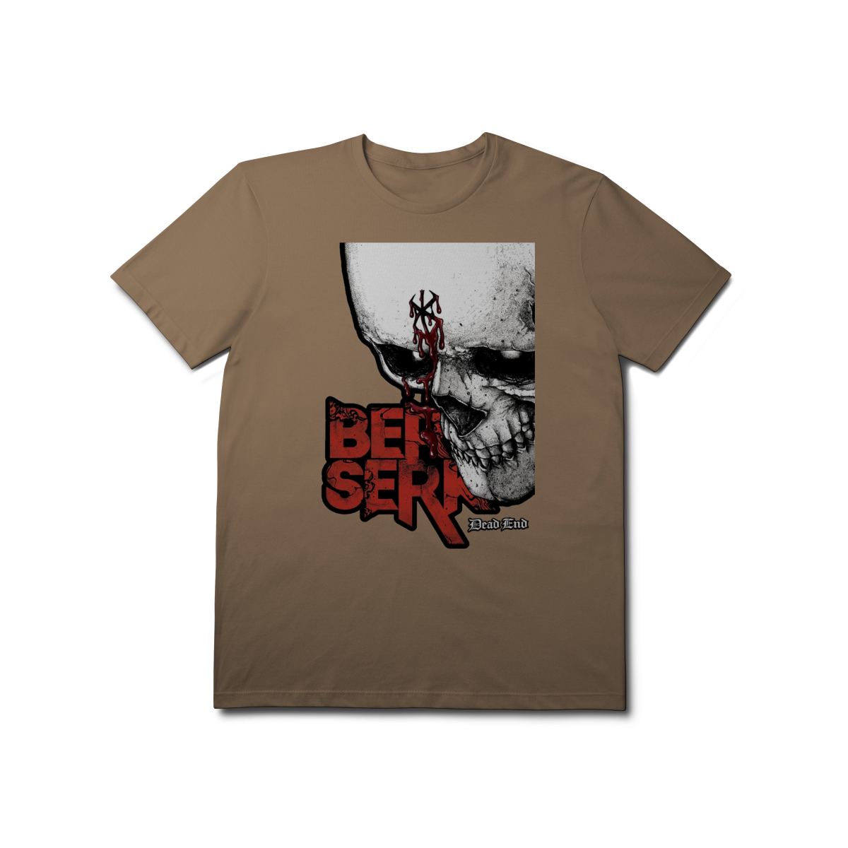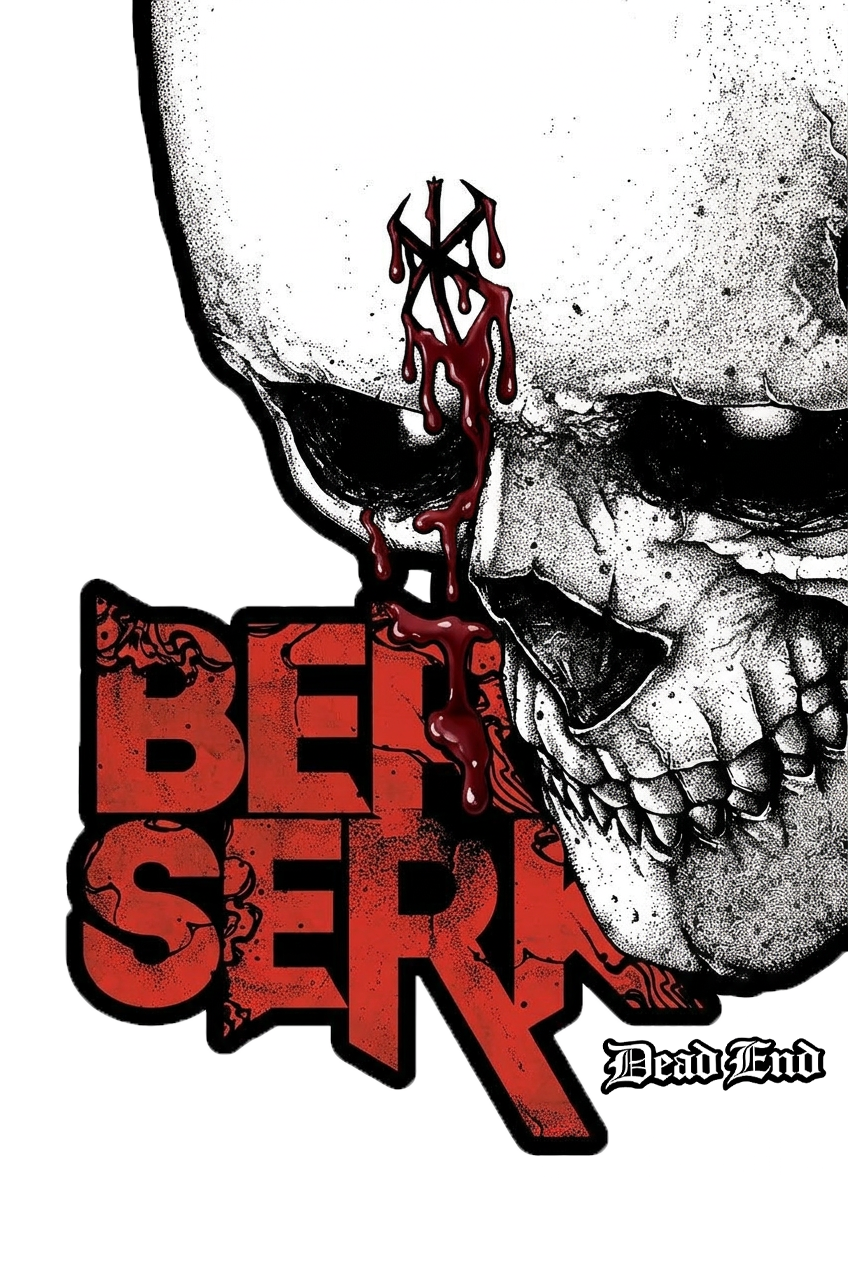 Design Brutalista e Gótico: Arte frontal agressiva inspirada na jornada de Guts, com foco na Marca do Sacrifício e estética de horror.